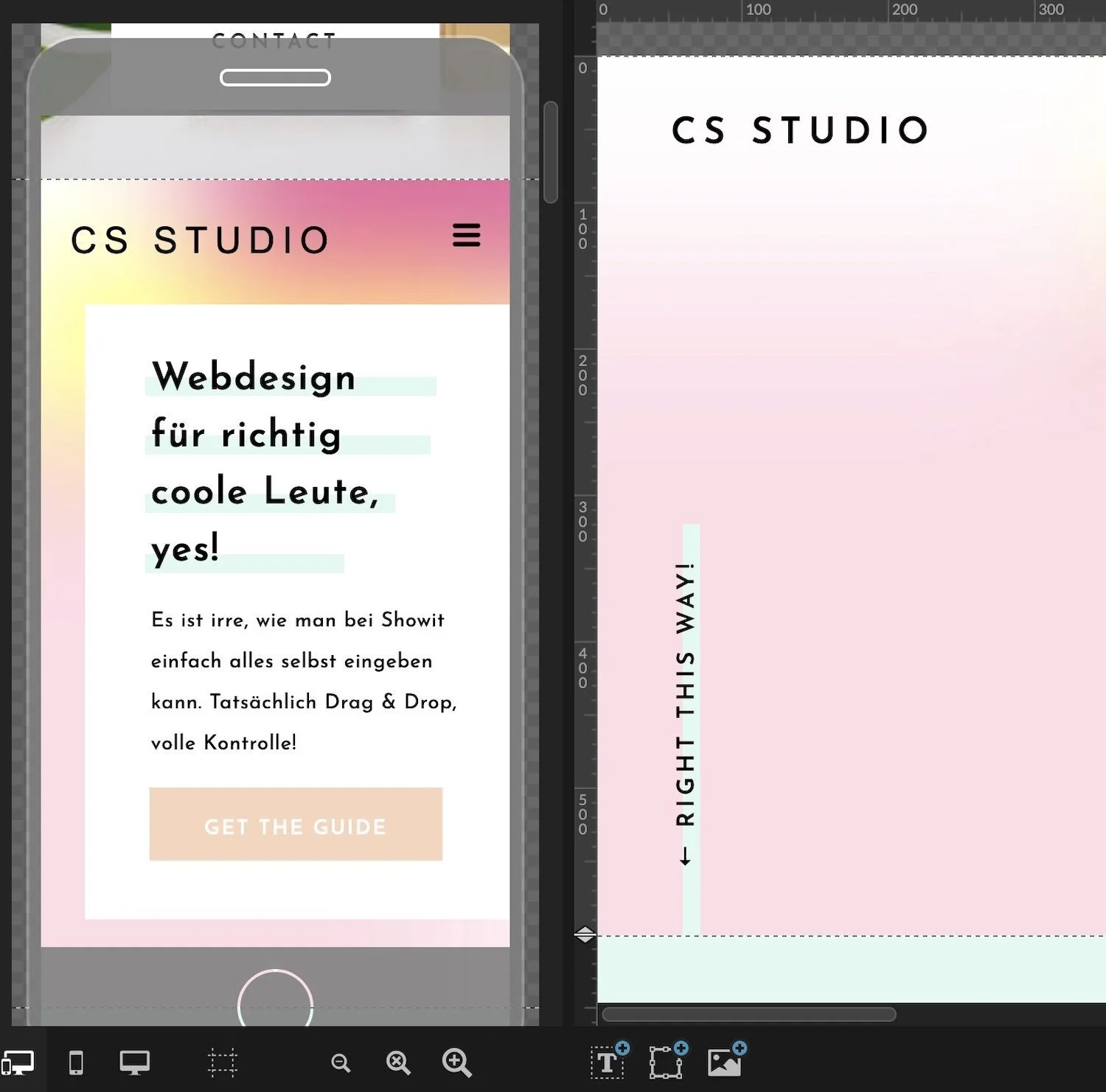 Verrückte Sache, wenn man andere Website-Tools gewohnt ist: Bei Showit kannst du tatsächlich so gut wie alles wild durcheinander ziehen und quasi alles ändern.