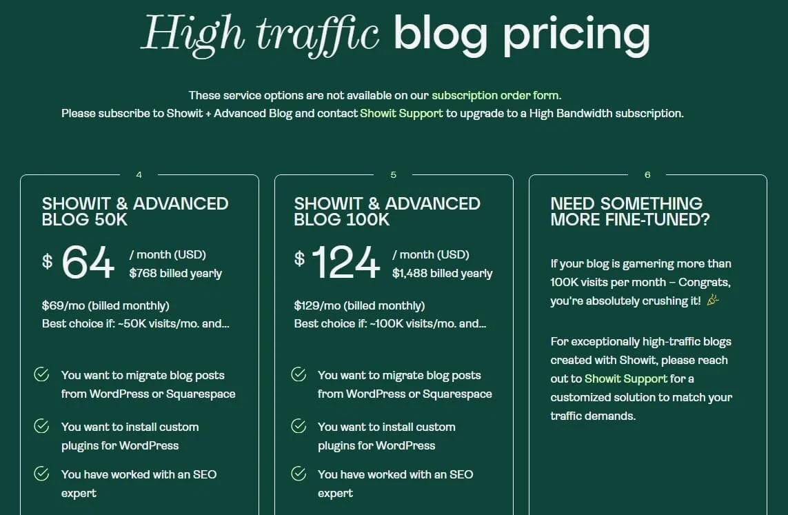 Showit & Advanced Blog 100k: Für § 129 im Monat bekommst du 50 GB Blog-Speicherplatz und bis zu 100.000 Blogbesuche monatlich.