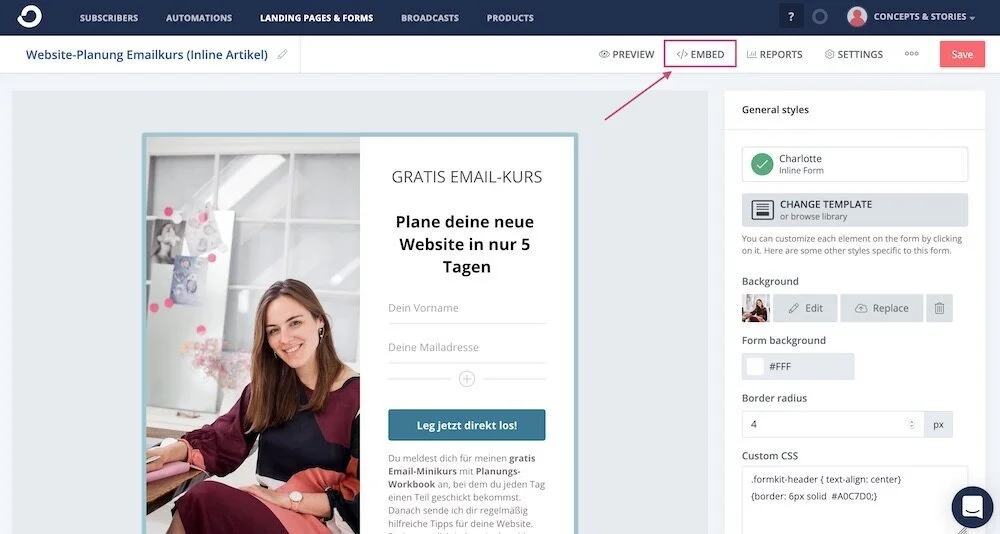 Schritt 1: Erstelle ein Anmeldeformular in ConvertKit